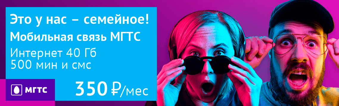С 1 июля по 30 сентября подключи Мобильную Связь за 350 рублей по акции от МТС! Получи БЕЗЛИМИТ на звонки абонентам MGTS по всей России, а также 500 минут разговора в других сетях и на стационарный телефон, 500 SMS и 40 Гб Интернета.